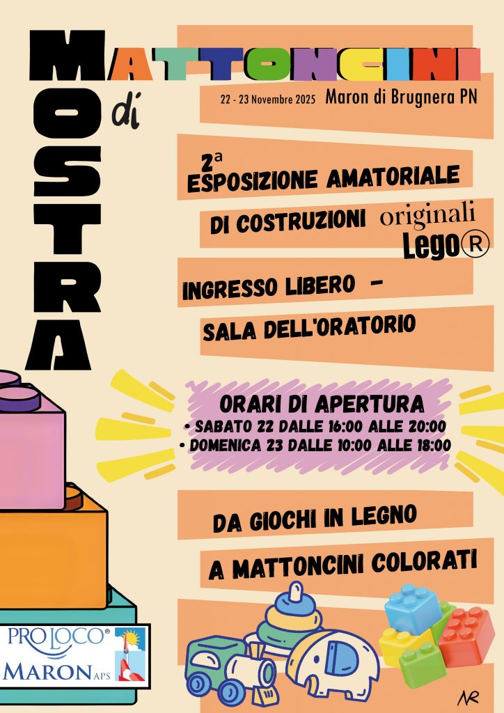 10:00 Dai giochi in legno … ai “MATTONCINI” COLORATI– 2^ Esposizione amatoriale di costruzioni originali LegoⓇ (fino alle 18:00)  ingresso libero – sala dell’Oratorio